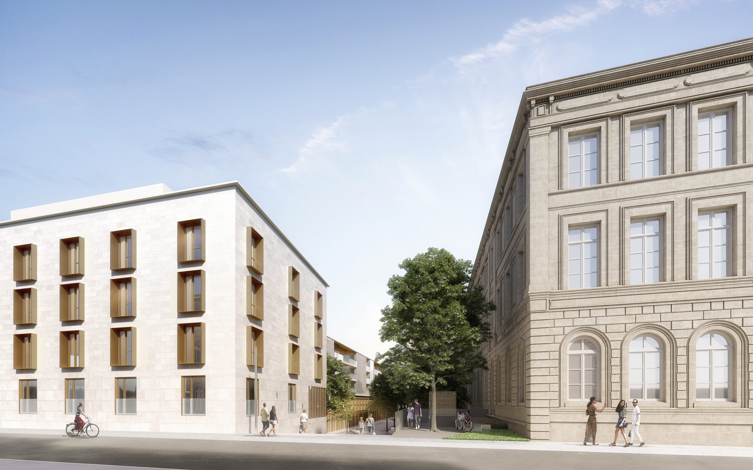 En plein cœur de Bordeaux, dans le quartier Saint Seurin, ces logements bénéficient d’un environnement privilégié. Les appartements sont spacieux et mêlent cachet de l’ancien et bénéfices de la rénovation : pierre de taille, belle hauteur sous plafond (de 3m70 à 4m50), fenêtres double vitrage en bois…. Cet ensemble de 28 logements du T1 au T4 est situé en rez-de-chaussée haut, en R+1 et en R+2 de la résidence Castéja, à l’intérieur du bâtiment historique. Le rez-de-chaussée haut est situé au même niveau que les rues Castéja et Thiac, et un niveau au-dessus de la voie piétonne traversant l’îlot.