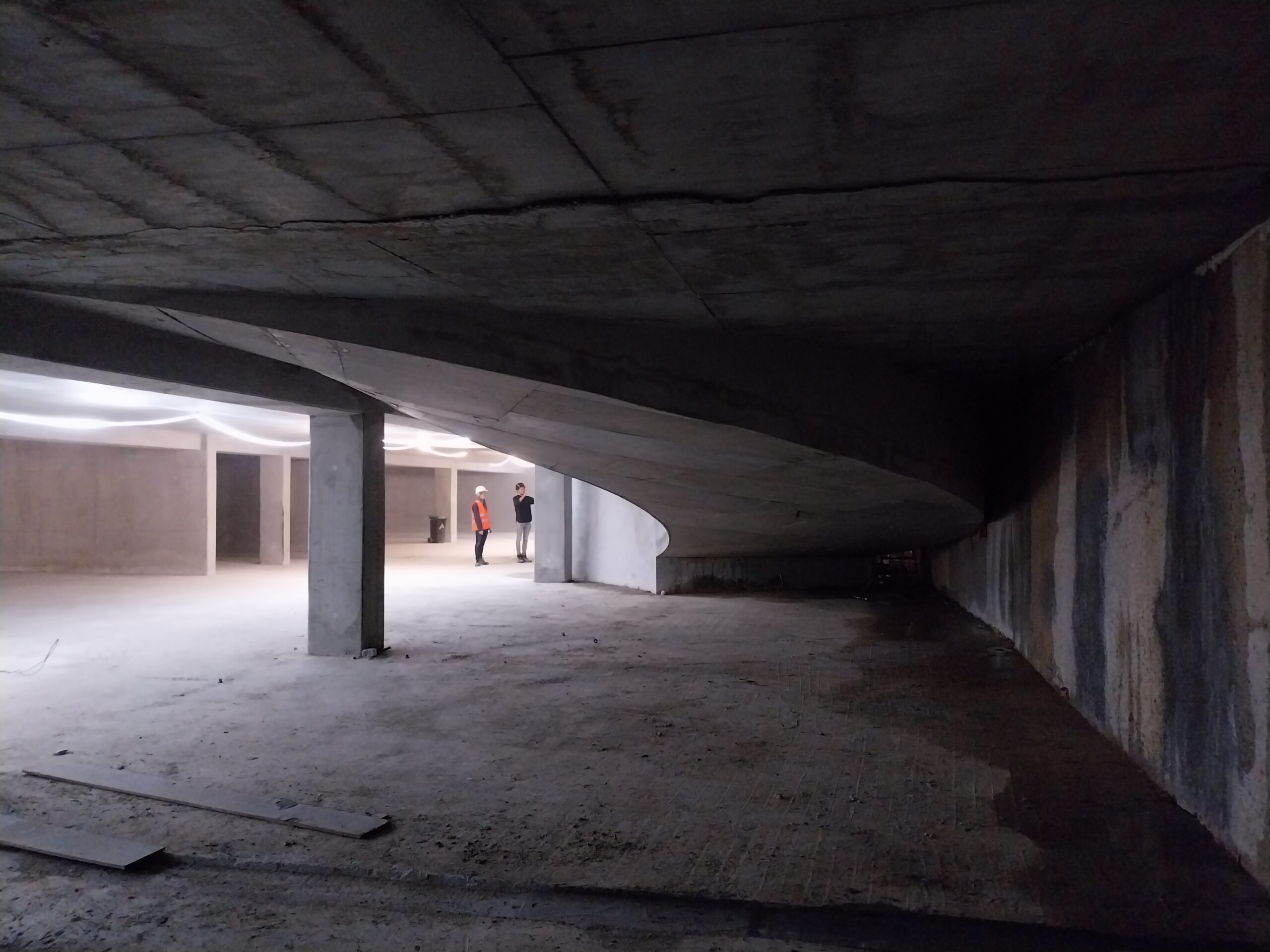 En images : la rénovation du portail et le retour à sa couleur d’origine, la fin du coulage des voiles du rez-de-jardin et vue par dessous de la rampe du parking souterrain.