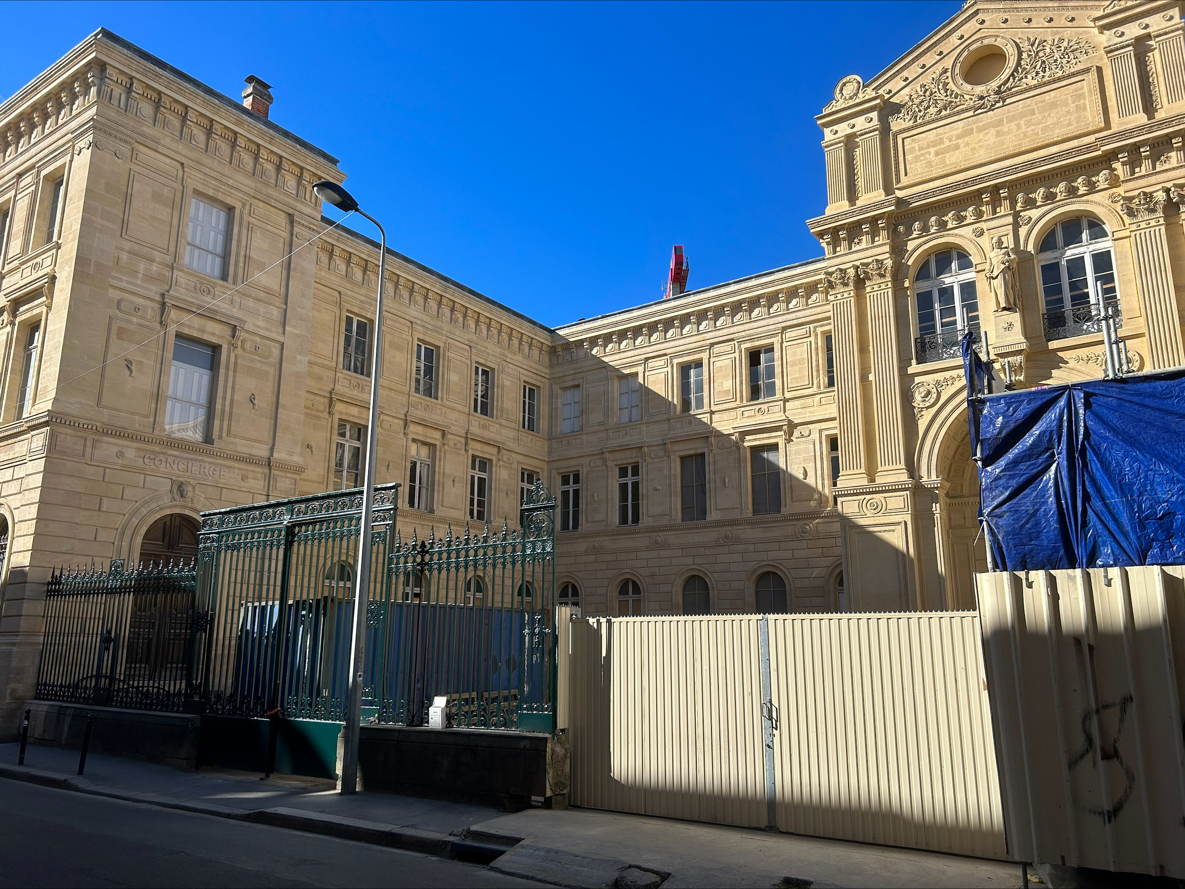 En images : finalisation du ravalement de la façade et démarrage des travaux de plâtrerie dans le bâtiment ancien. A l’arrière, la voie nouvelle se dessine entre les deux ensembles. Celle-ci sera piétonne et ouverte à tous, permettant de réouvrir l’ilot sur son environnement.  …