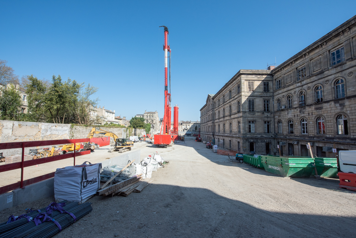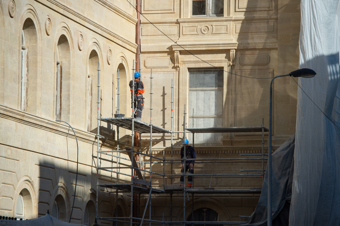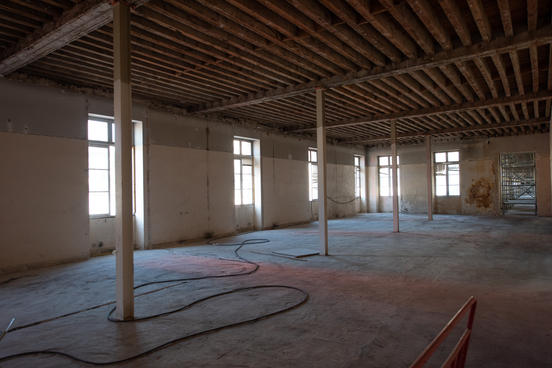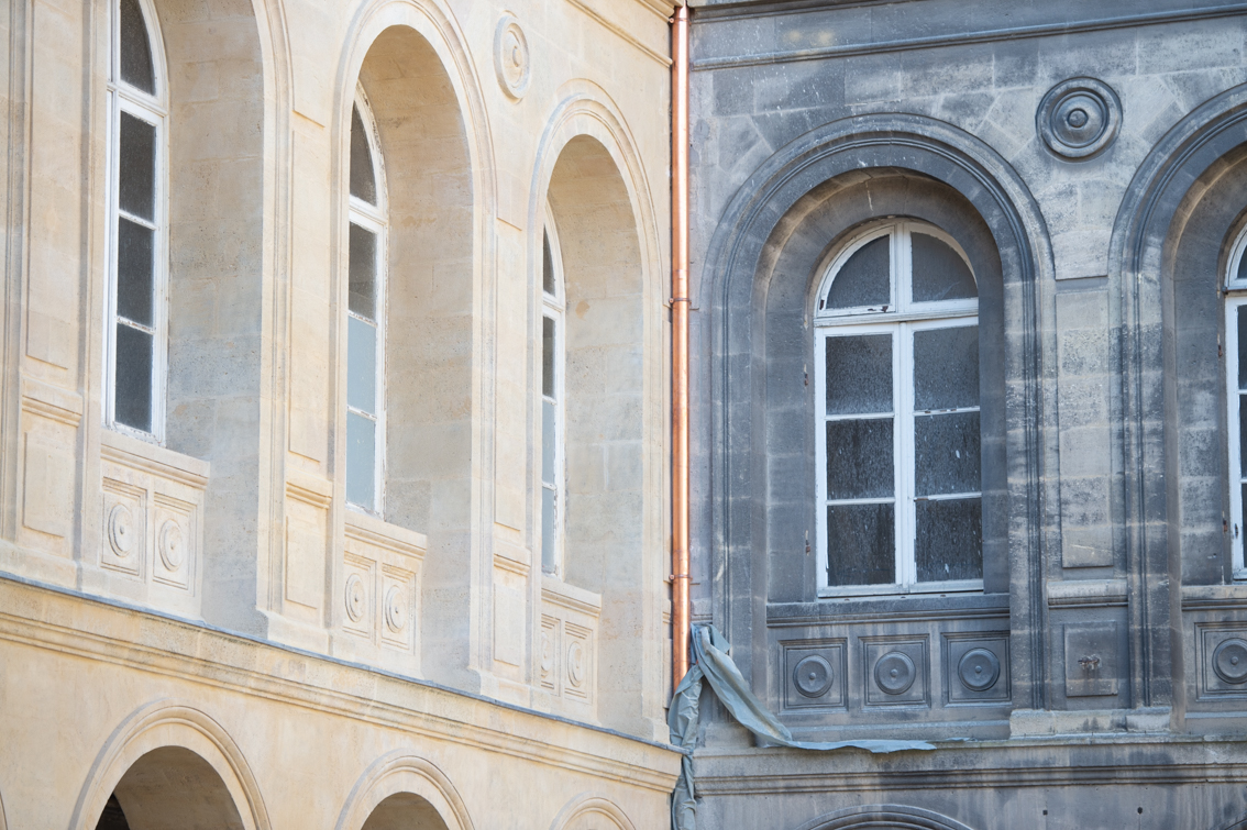 En images : finalisation du ravalement de la façade et démarrage des travaux de plâtrerie dans le bâtiment ancien. A l’arrière, la voie nouvelle se dessine entre les deux ensembles. Celle-ci sera piétonne et ouverte à tous, permettant de réouvrir l’ilot sur son environnement. …